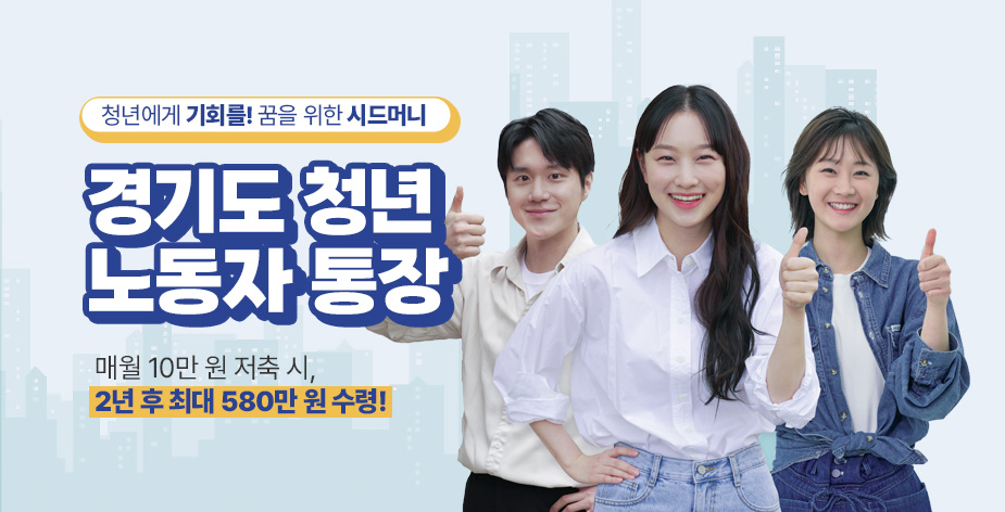 경기도 청년 노동자 통장은 참여자가 2년간 일자리를 유지하면서 매달 10만 원씩 저축하면 경기도 지원금 월 14만 2000원이 추가 적립돼 2년 후 580만 원(현금 480만 원과 지역화폐 100만 원)을 받는 사업입니다. 신청기간 신청자격 확인 잘하시고 서둘러 신청하시고 돈벌어 가세요.